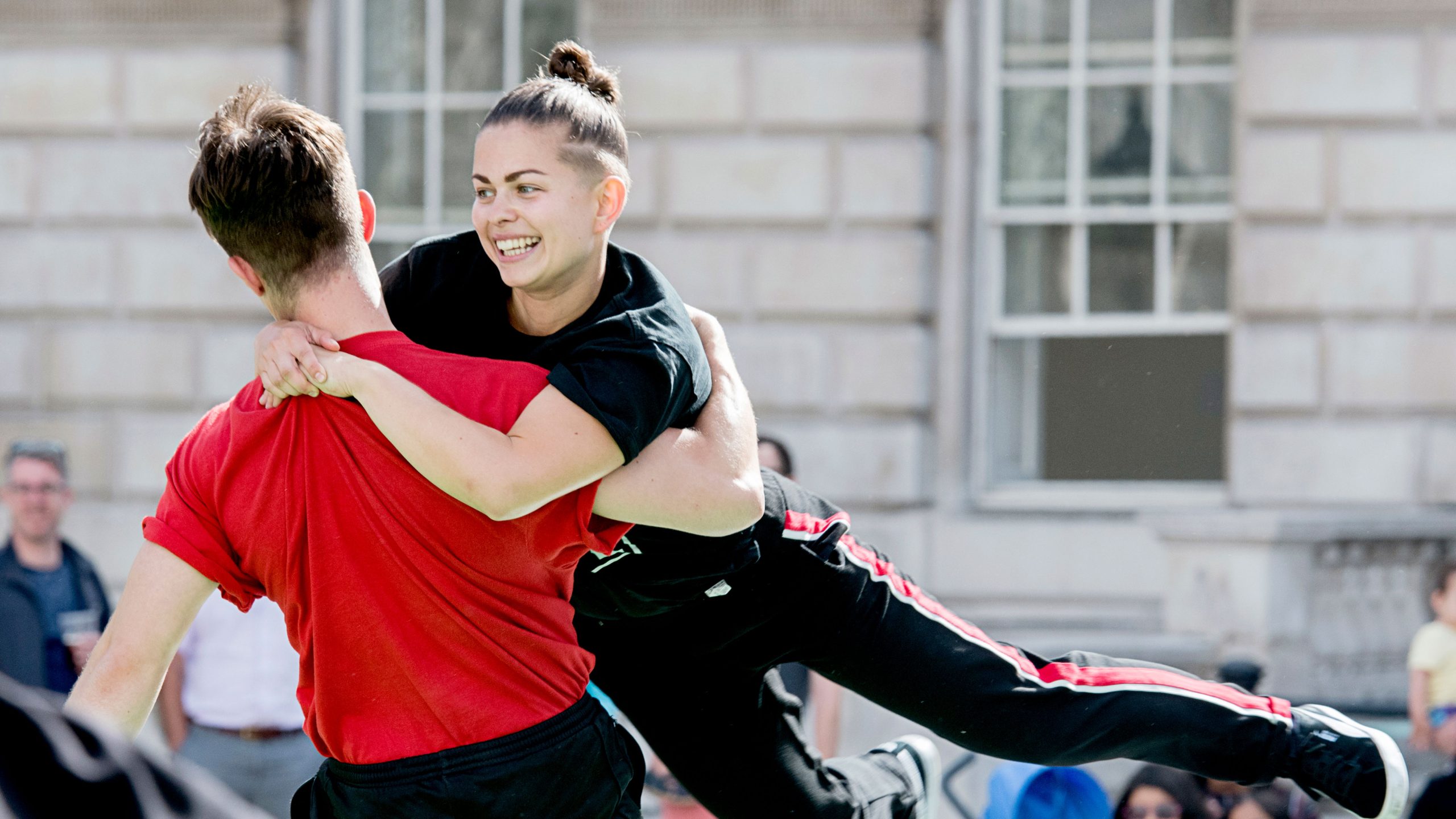 Union Black was a show that boldly drew parallels between the alliances and divisions within the game of politics and the must-win business of football. It combined the signature fast-paced footwork and physical floor-work of Far From the Norm along with the strength and skill of a group of circus artists.