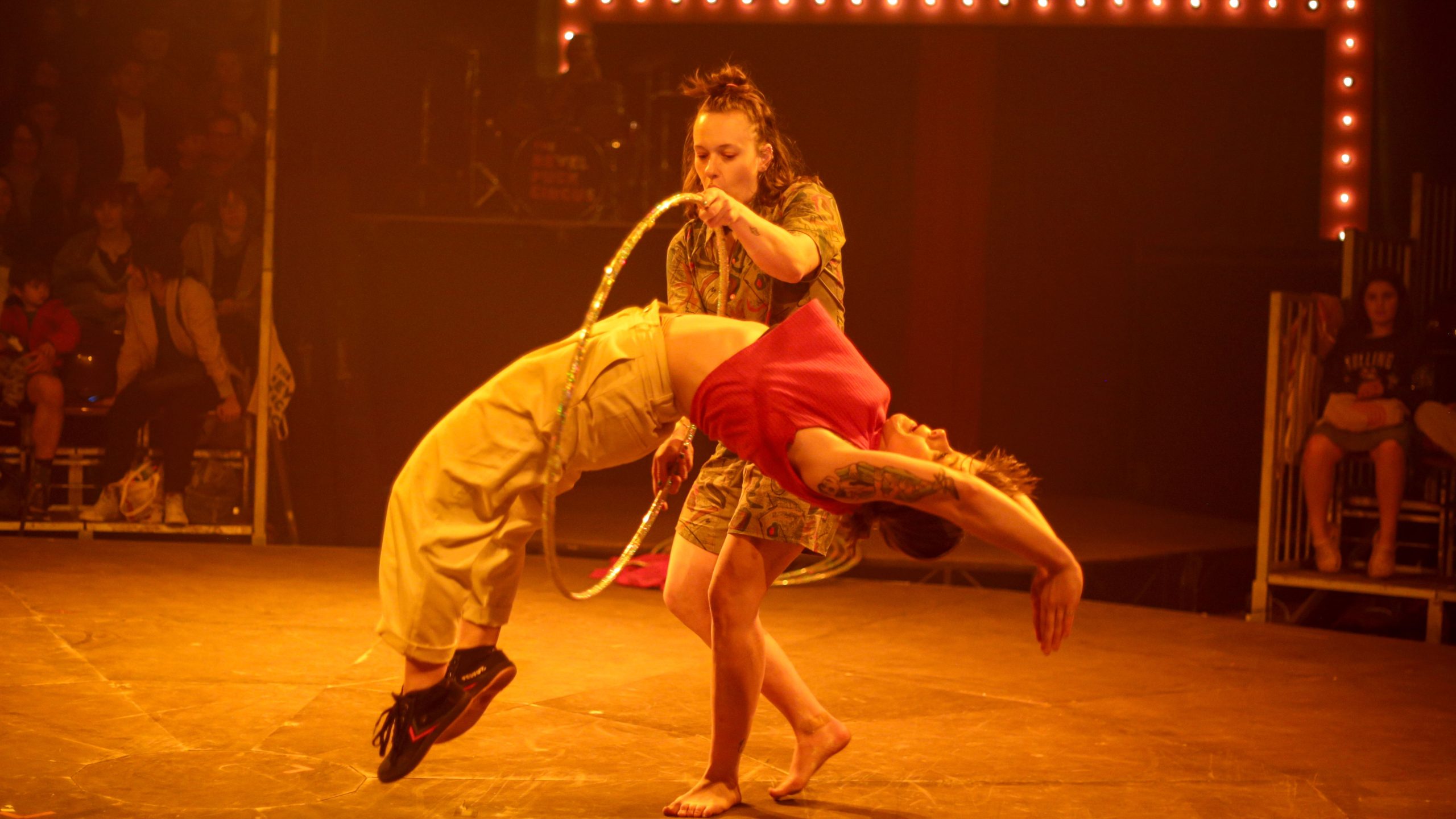 The Nose Dive Assembly is the third and final instalment in the Risk Trilogy, exploring trust, daring and community. It brings immersive, joyous energy and high-level skill. A show for everyone, it is packed full of large-scale contemporary circus, high wire walkers, teeterboarders, bespoke apparatus and the only female Wheel of Death duo in the country.